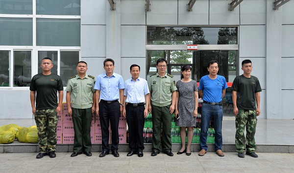 为进一步增进军民关系,,,在“八一”建军91周年之际,,,8月1日上午,,,盐房定远项目徽盐安徽饭店向导班子一行来到定远县消防大队走访慰问官兵,,,在为他们送上西瓜、饮料、矿泉水等慰问品的同时,,,也转达了中共徽盐地产定远项目党支部对他们节日的问候与祝福。。